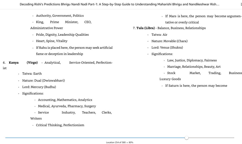 This book is a course manual for the Bhrigu Nandi Nadi Course conducted at Saptarishis Astrology Institute. It is designed to help students decode the 300+ horoscopes and predictions given by Shri R.G. Rao ji, using simple and systematic Bhrigu Nandi Nadi rules. Buy it online with this link Decoding Rishi’s Predictions Bhrigu Nandi Nadi Part-1: A Step-by-Step Guide to Understanding Maharishi Bhrigu and Nandikeshwar Rishi’s Nadi Predictions eBook : Bhatt, Vinayak: Amazon.ca: Kindle Store