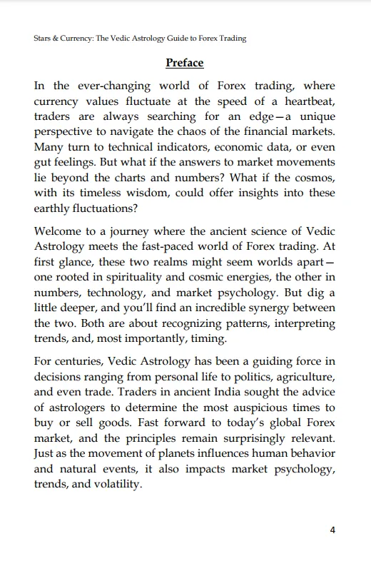 In “Stars & Currency: The Vedic Astrology Guide to Forex Trading,” you’ll find a unique blend of ancient wisdom and modern trading strategies. This book takes you on a journey to understand how planetary movements affect global currencies and how you can use this knowledge to your advantage.